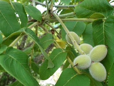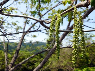 花が終わるとくるみは実をつけはじめ、房のようにまとまって育ちます。