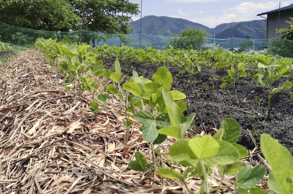 大豆畑の草除け