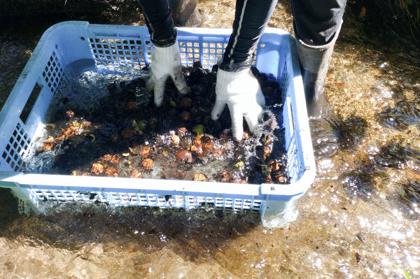 くるみの実洗い
